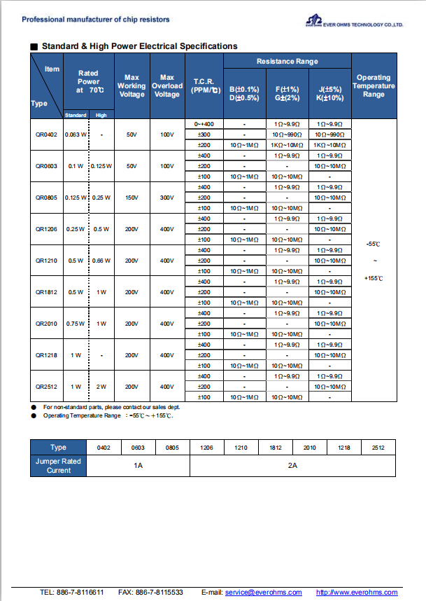 Ever Ohms CRH0603D69K8P05Z 高功率电阻 选型表