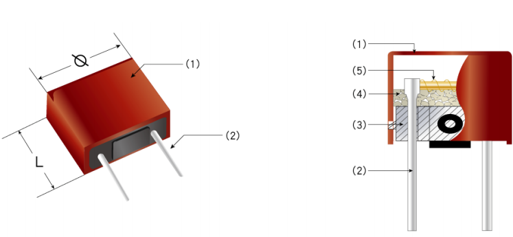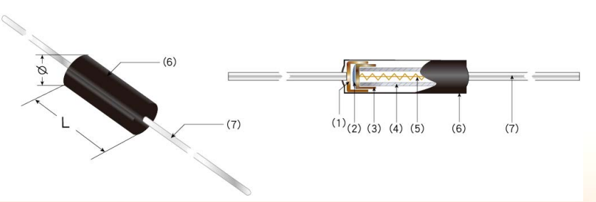 3.端电极:(Cu铜/Ni镍/Sn锡) 4.保护防焊层:防火级环氧树脂,符合UL-94-V0要求(绿色) 5:印文防焊层:防火级环氧树脂,符合UL-94-V0要求(黑色) 6:侧边电极:(Cu铜/Ni镍/Sn锡) NANO型: 1.焊接材料:Sn锡 2.铜帽:铜镀金 3.本体:陶瓷管 4.熔丝:合金线 插件型: Sub-miniature fuse: 1.外壳:塑料 2.镀锡铜线 3.内芯:塑料 4.填充剂:石英砂 5.熔线:合金线 轴状型: Micro fuse 1.外铜帽:铜镀 2.焊接材料:锡 3.内铜帽:铜镀镍 4.本体:陶瓷管 5.熔丝:合金线 6.外壳:塑料 7.引线:镀锡铜线 Ceramic tube fuse 1.焊接材料:锡 2.本体:玻璃管 3.铜帽:铜镀镍 4.熔丝:合金线 SDM贴片保险丝由于受到体积与结构的限制,I²T及BC能力比DIP fuse低,主要适用于DC低压转换或DC输出保护。(未来在AC电压下BC能力的提升,将逐步推广应用于AC-DC) DIP插件型的主要优势是认证齐全,但是随着小型化产品,逐步会转向SMD型。