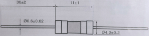 3.6*10mm陶瓷管保险丝-TDP系列-单帽带引线尺寸图如下
