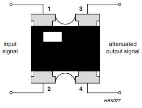 其设计决定了所需的衰减价值衰减层上覆盖着一层保护涂层和标记点表示输入引脚1如图1的连接图所示。最后,四个外部终端是补充。为了保证最佳的可焊性终端的外层为无铅(纯