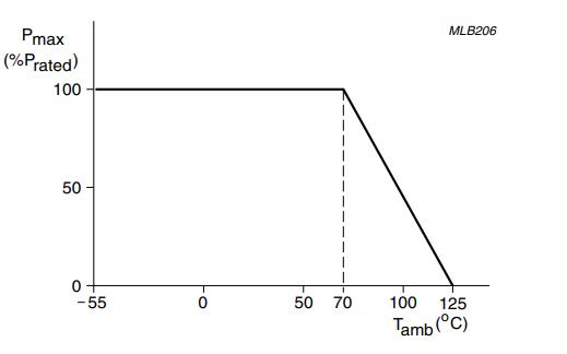 (最大耗散(Pmax)额定功率的百分比表示作为工作环境(Tamb)的函数)