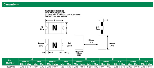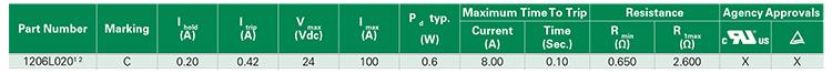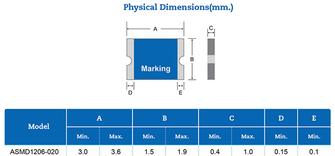 asmd1206-020可替代1206l020,该保险丝无铅、无卤