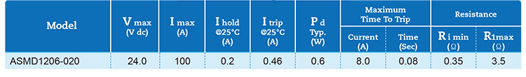 【选型】自恢复保险丝asmd1206-020可替代1206l020,该保险丝无铅、无卤