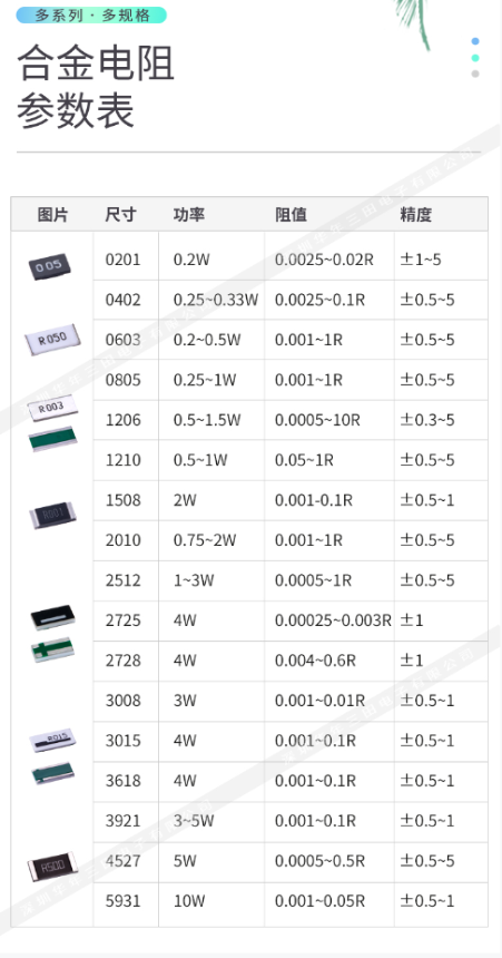 合金电阻型号与阻值选型列表图