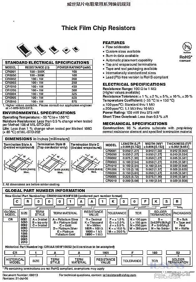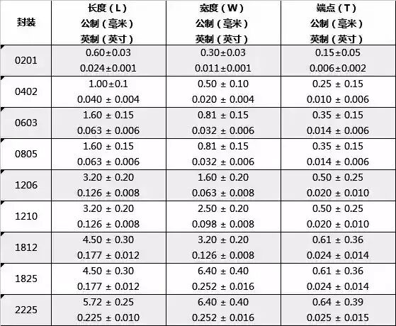 按照英制标准,其引脚封装通常有以下12种型号:0201、0402、0603、0805、1206、1210、1812、1825、2225、3012、3035。