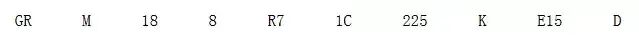由3位字母数字表示,单位为皮法(pF)。第1位和第2位数字为有效数字,第3位数字表示有效数字后的0的个数,有小数点时以大写字母“R”表示,此时所有数字均为有效数字。