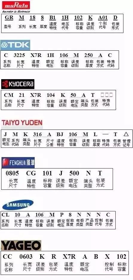常用材质村田代码有5C,R6,R7,F5等,具体的对应值如下: