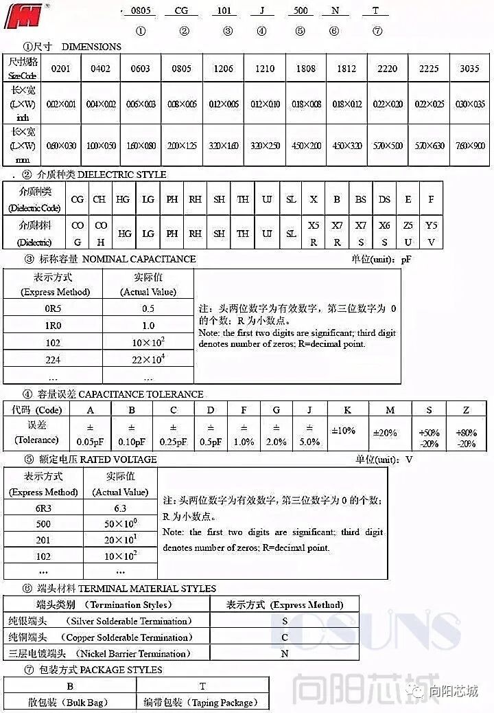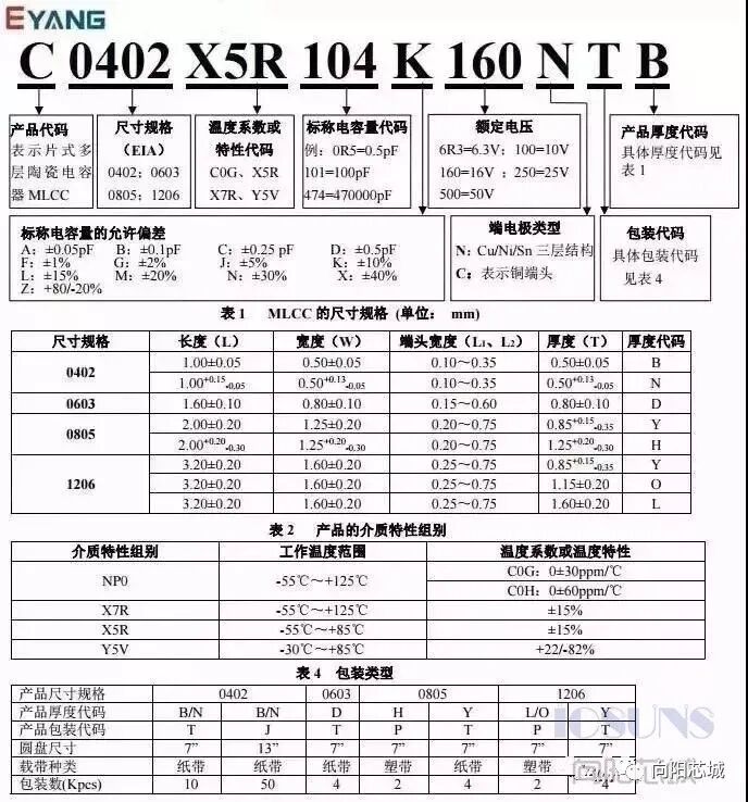 “0603”代表封装尺寸,为“系列名称”(CC/AC/CQ/CX等)后面的4位数,标准EIA封装常用尺寸有0201、0402、0603、0805、1206、1210、1808、1812、2010、2512等。