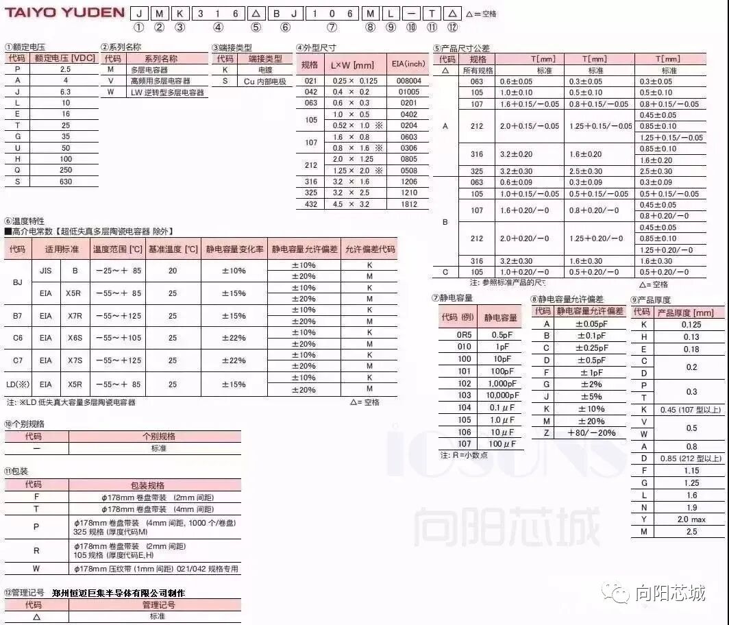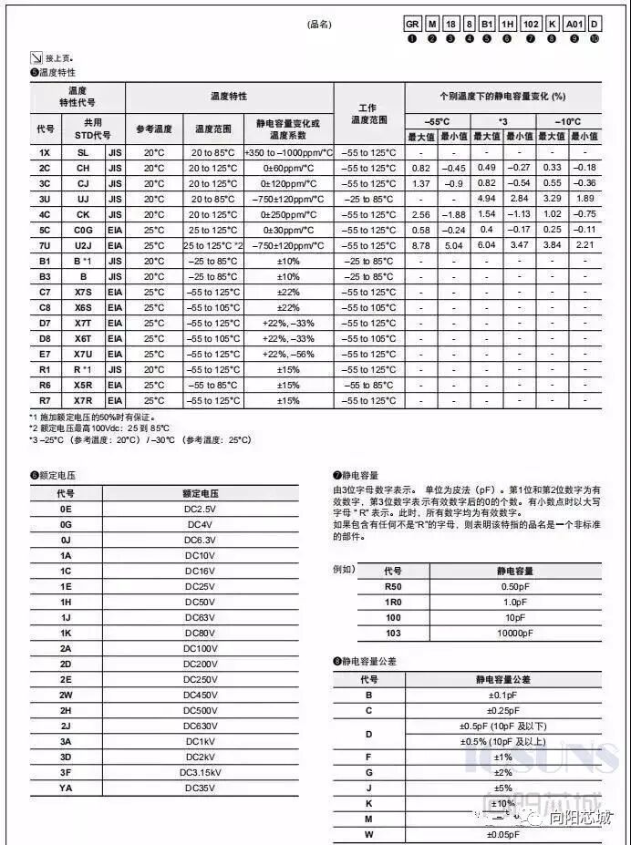 常用电压村田表示有0J,1A,1C,1E,1H等,对应值如下: