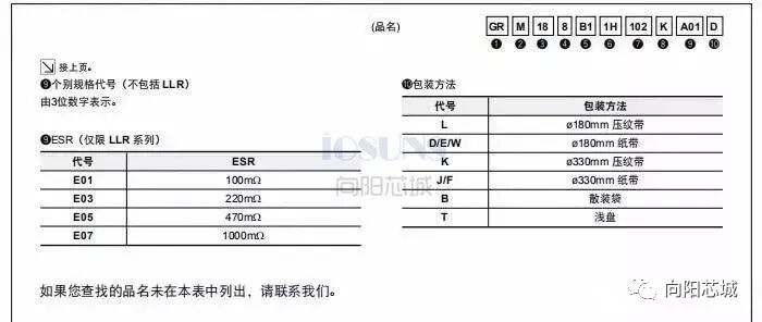 L表示直径180mm的压纹带(塑料)编带盘装;D表示直径180mm纸带编带盘装;B表示散袋装。