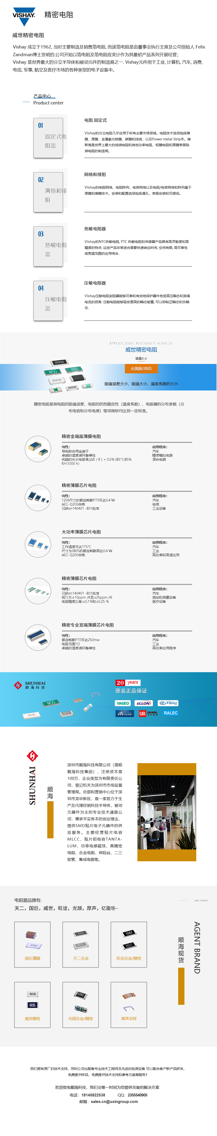 ,VISHAY精密电阻,威世主要是生产精密电阻,电流检测电阻,功率电阻的企业,其应用及其广泛,如仪器仪表等等。